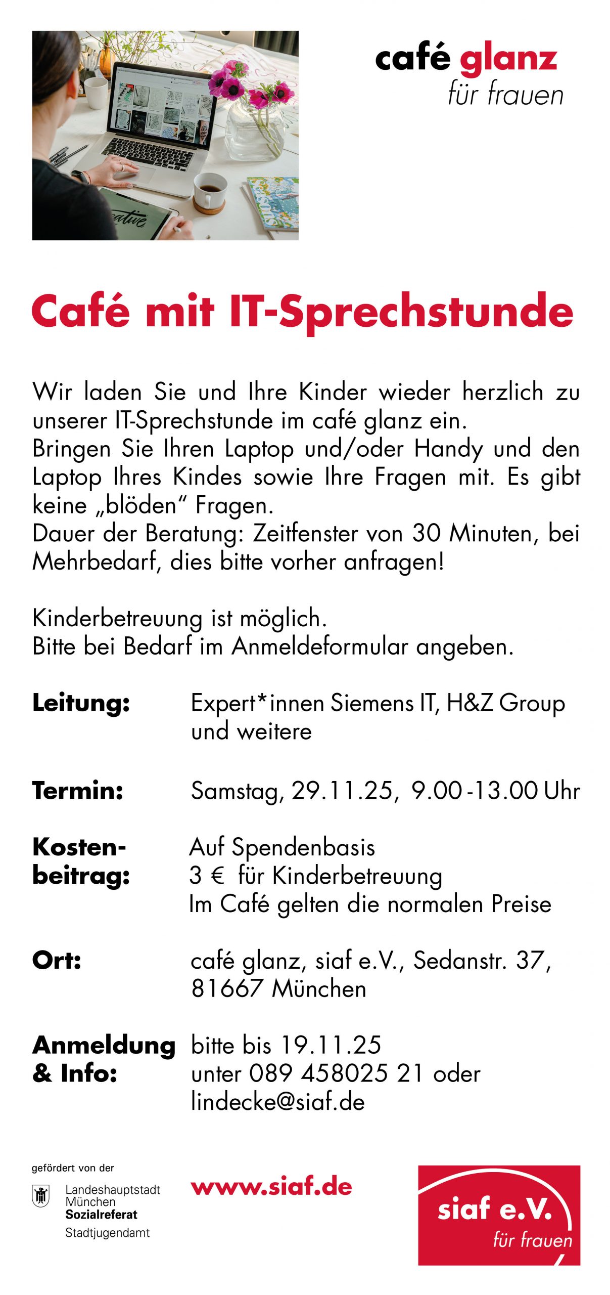 Anmeldung bis 07.11.25 unter allfam@siaf.de oder 089 – 45 80 25 – 22.