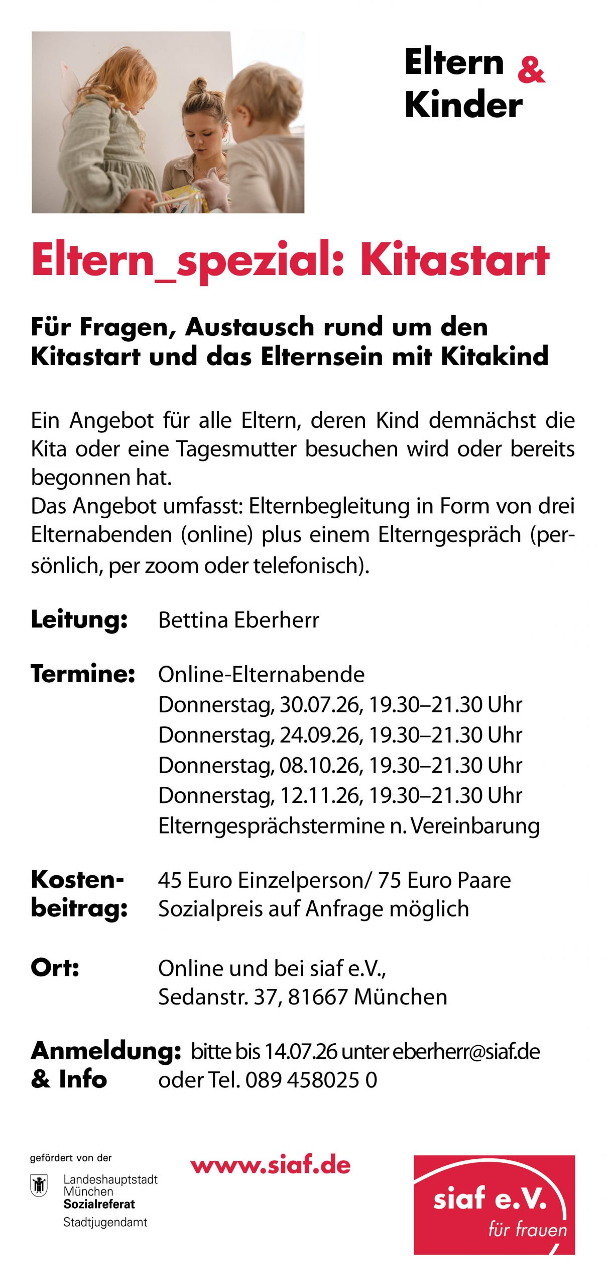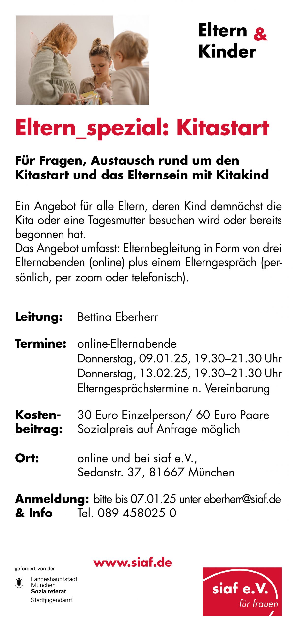Anmeldung: siaf e.V., Tel. 089 – 45 80 25 0 oder info@siaf.de